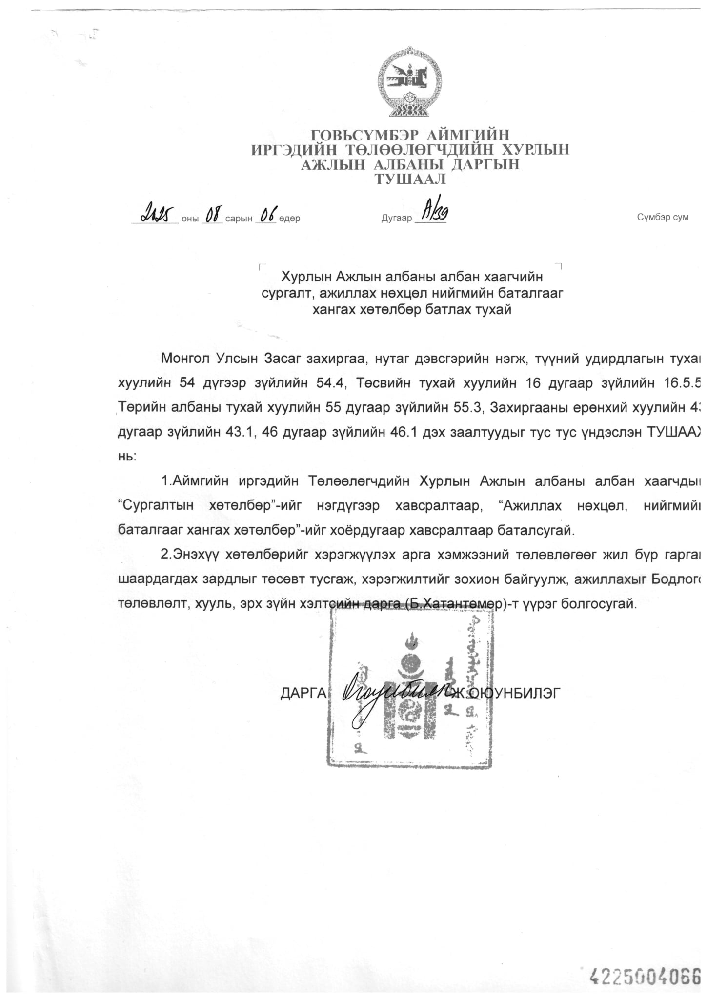 Цахим шуудан : Gsa.ith@govisumber.gov.mn