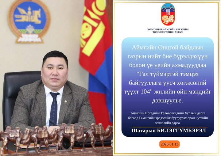 Говьсүмбэр аймгийн Онцгой байдлын газрын нийт бие бүрэлдэхүүн болон үе үеийн ахмадууддаа "Гал түймэртэй тэмцэх байгууллага үүсч хөгжсөний түүхт 104" жилийн ойн мэндийг дэвшүүлье.