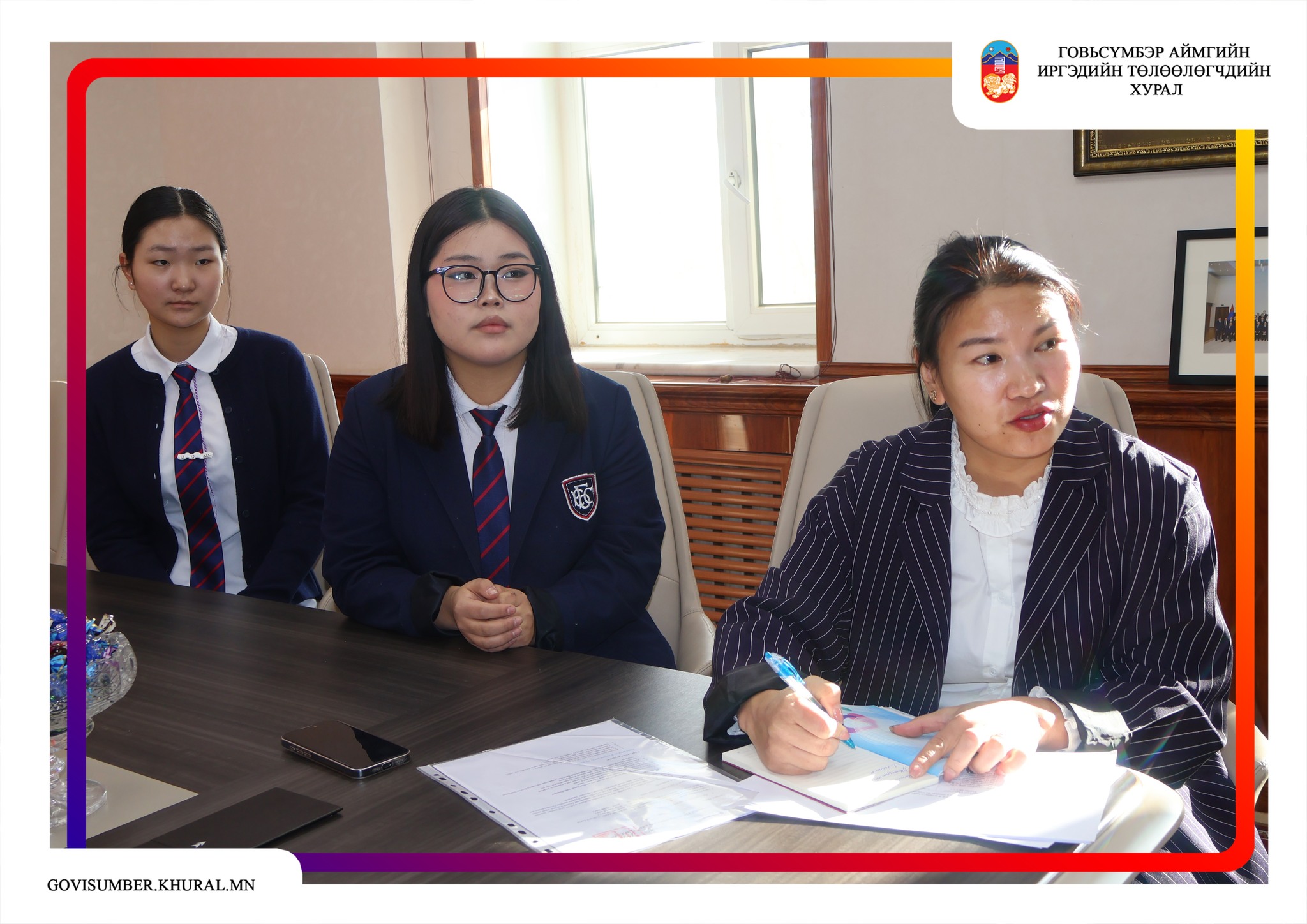 Уулзалтын үеэр Өсвөрийн Улаан Загалмайн клубийн 2025–2026 оны хичээлийн жилийн үйл ажиллагааны төлөвлөгөөний хэрэгжилт, зохион байгуулсан арга хэмжээ, сурагчдын оролцоо, үр дүнгийн талаар танилцуулж, цаашид хэрэгжүүлэх зорилтын талаар дэлгэрэнгүй ярилцав. Клубийн зүгээс анхны тусламжийн сургалт, сайн дурын хүмүүнлэгийн үйл ажиллагаа, гамшгийн эрсдэлийг бууруулах мэдлэг олгох сургалт, эрүүл мэнд, байгаль орчны чиглэлээр нөлөөллийн ажлуудыг амжилттай зохион байгуулж буй талаар мэдээлж, эдгээр үйл ажиллагааг өргөжүүлэн хөгжүүлэх шаардлагын талаар санал солилцов. Аймгийн иргэдийн Төлөөлөгчдийн Хурлын дарга Ш.Билэггүмбэрэл нь аймгийн УЗ-н хорооны тэргүүний хувьд Өсвөрийн Улаан Загалмайн клубийн үйл ажиллагаа, хүүхэд, залуучуудын сайн дурын хүмүүнлэгийн үйлсэд оролцох идэвх санаачилгыг дэмжиж ажиллахаа илэрхийлж, сурлагын өндөр амжилт хүслээ.