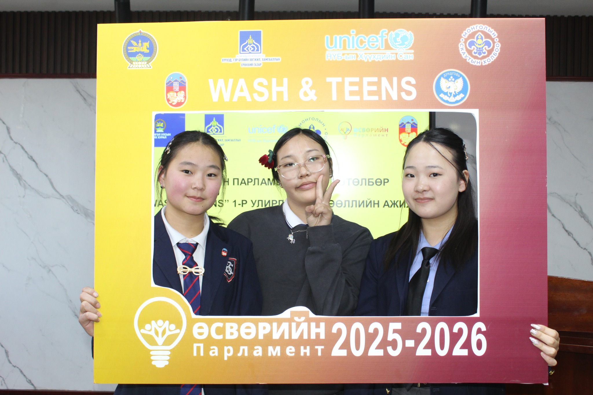“Сургуулийн орчин дахь аюулгүй усан хангамж, ариун цэвэр, эрүүл ахуй ба өсвөр үе" сэдвийн хүрээнд зохион байгуулагдаж буй уг хөтөлбөрт eрөнхий боловсролын сургуулиудын удирдлагын төлөөлөл болон сурагчид оролцлоо.
